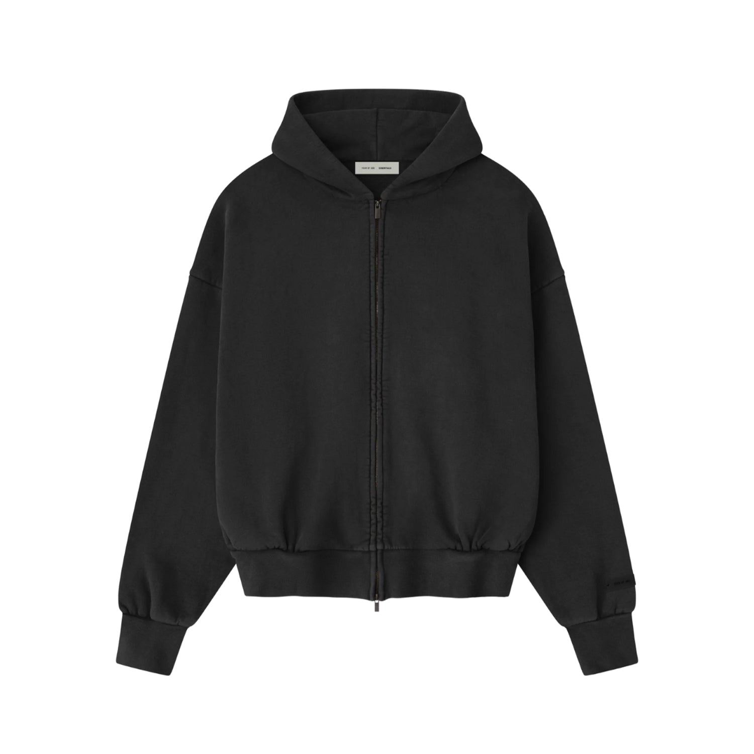 FEAR OF GOD ESSENTIALS EMBROIDERED CLASSIC FULL ZIP HOODIE VINTAGE BLACK