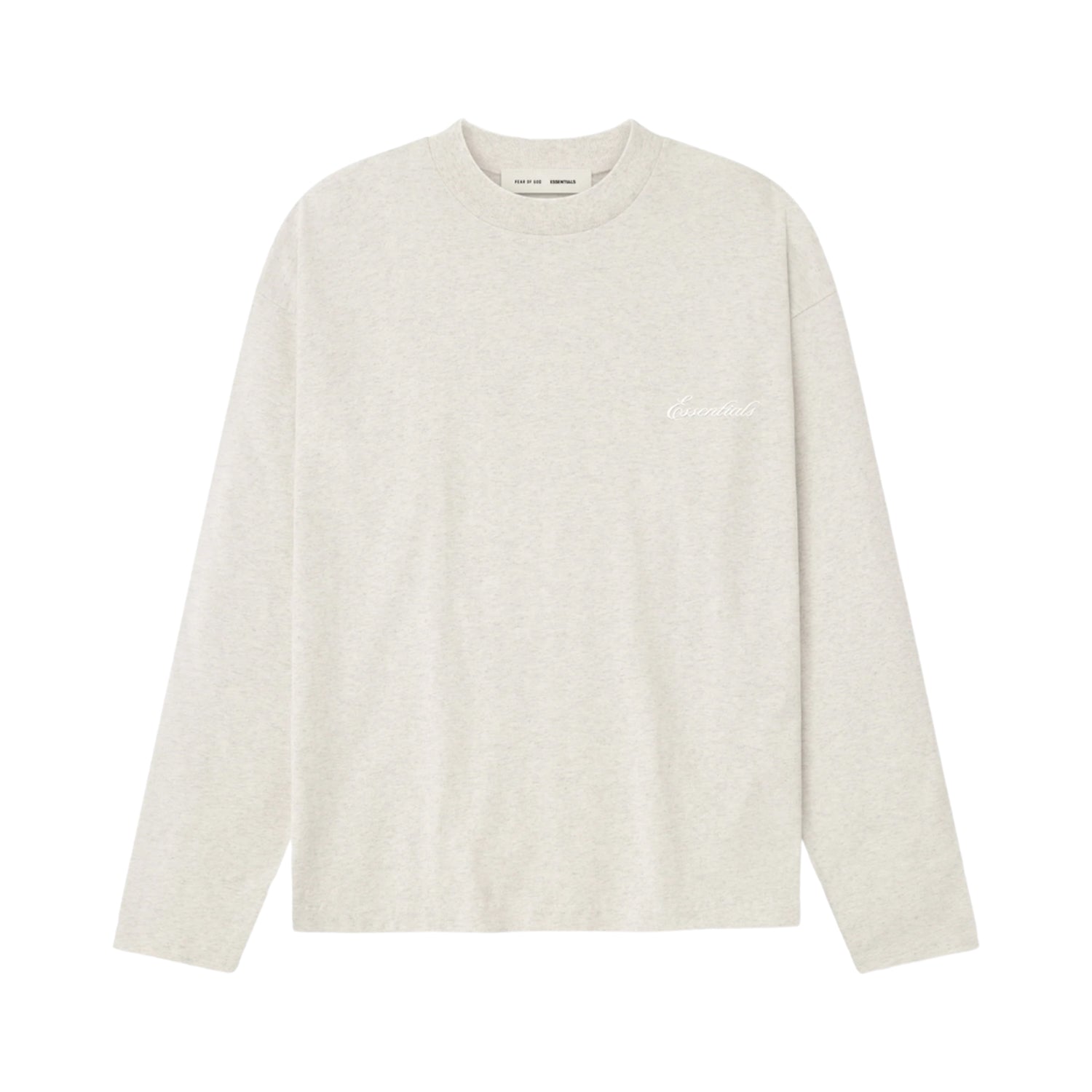 FEAR OF GOD ESSENTIALS EMBROIDERED CLASSIC LONG SLEEVE TEE OATMEAL HEATHER