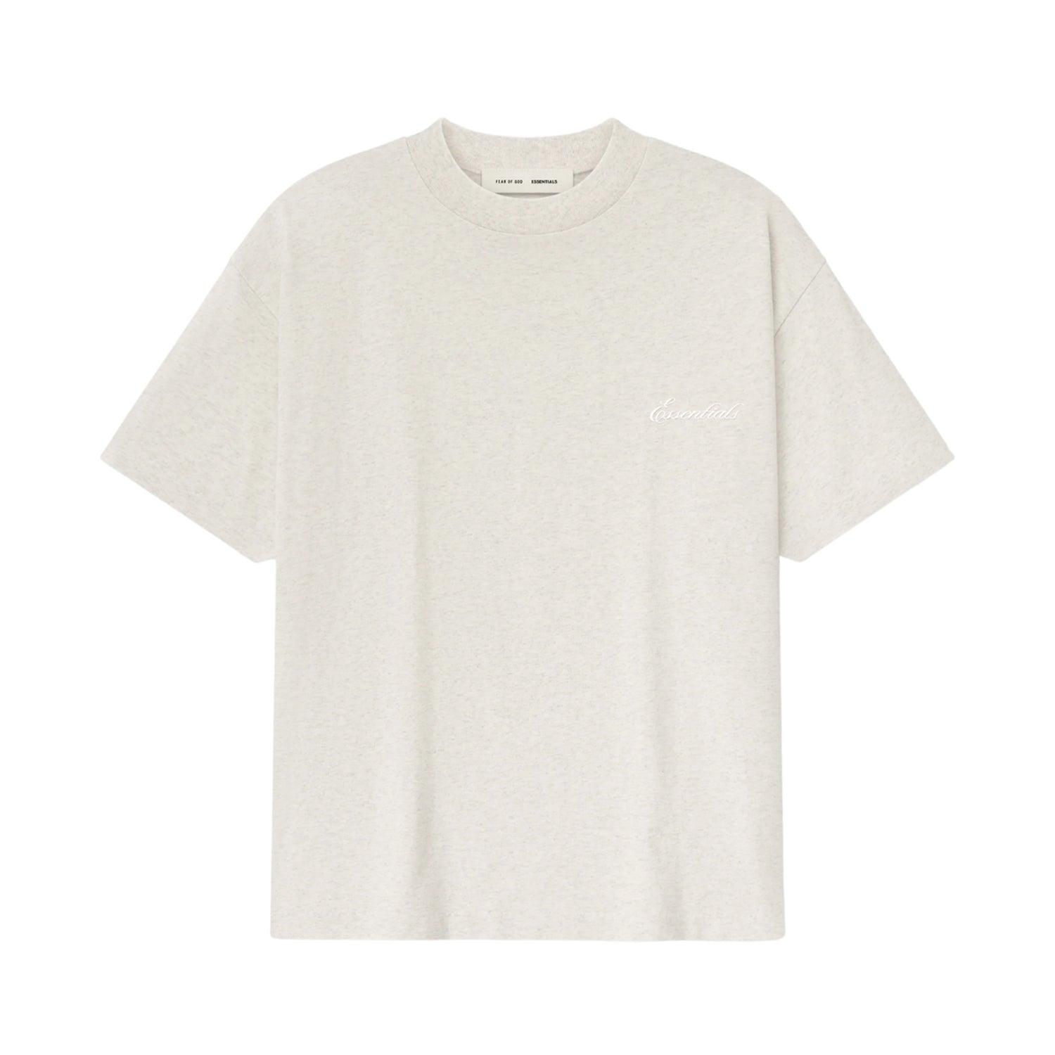 FEAR OF GOD ESSENTIALS EMBROIDERED CLASSIC SHORT SLEEVE TEE OATMEAL HEATHER