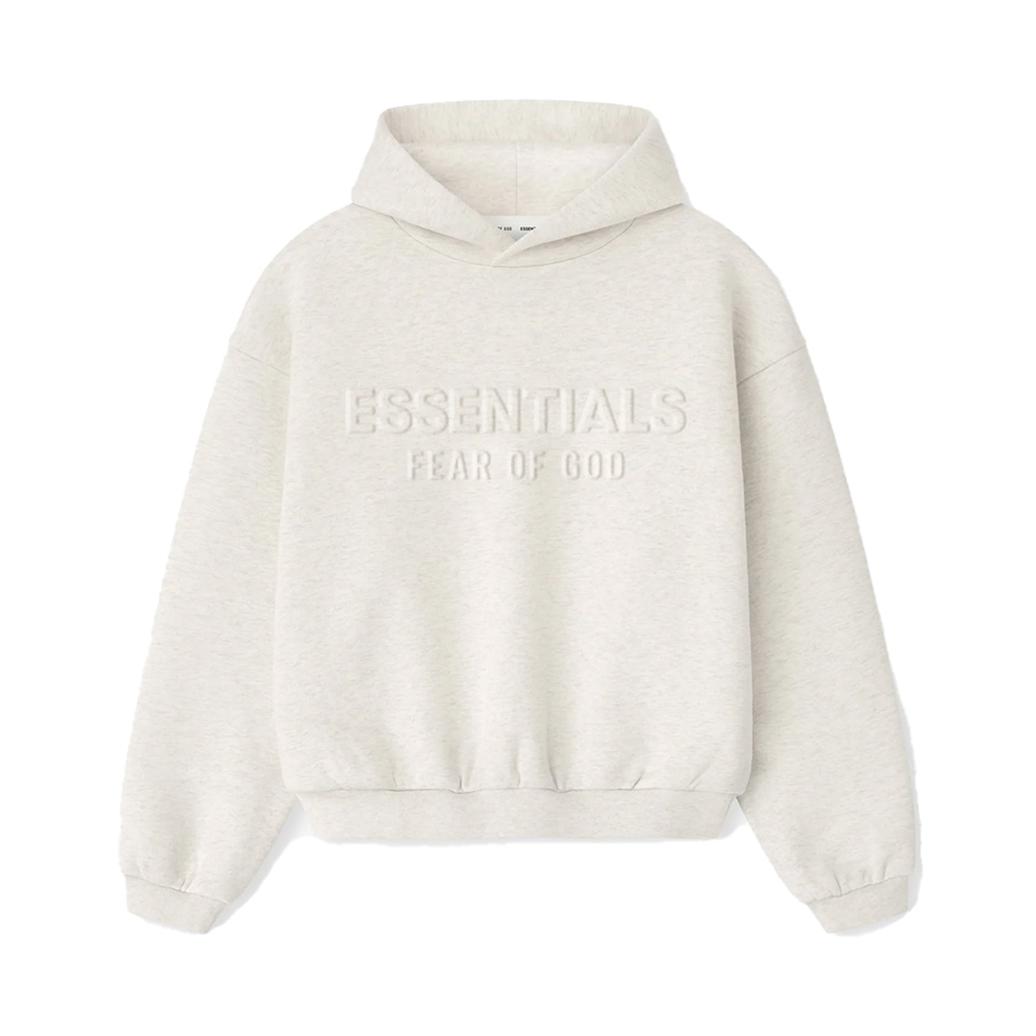 FEAR OF GOD ESSENTIALS KID'S EMBOSSED CLASSIC HOODIE OATMEAL HEATHER