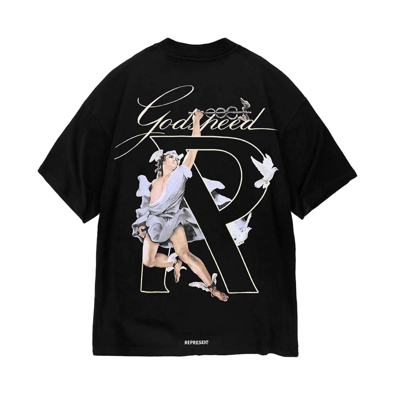 Introducing the Hermes T-Shirt in Jet Black, a luxury oversized t-shirt crafted from medium weight jersey cotton. The t-shirt features a high density screen print graphic to the front and back with a Represent metal bar logo to the hem.